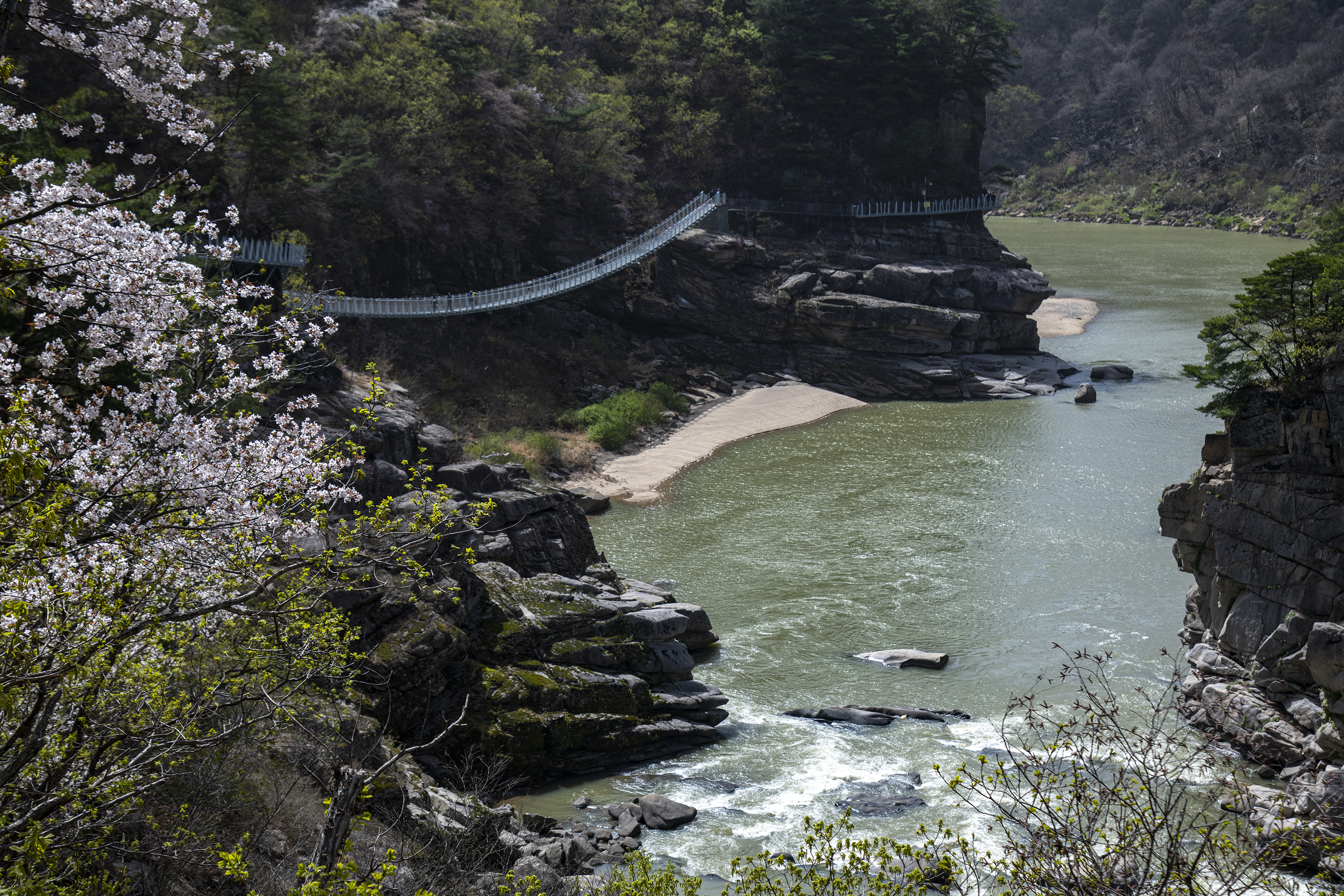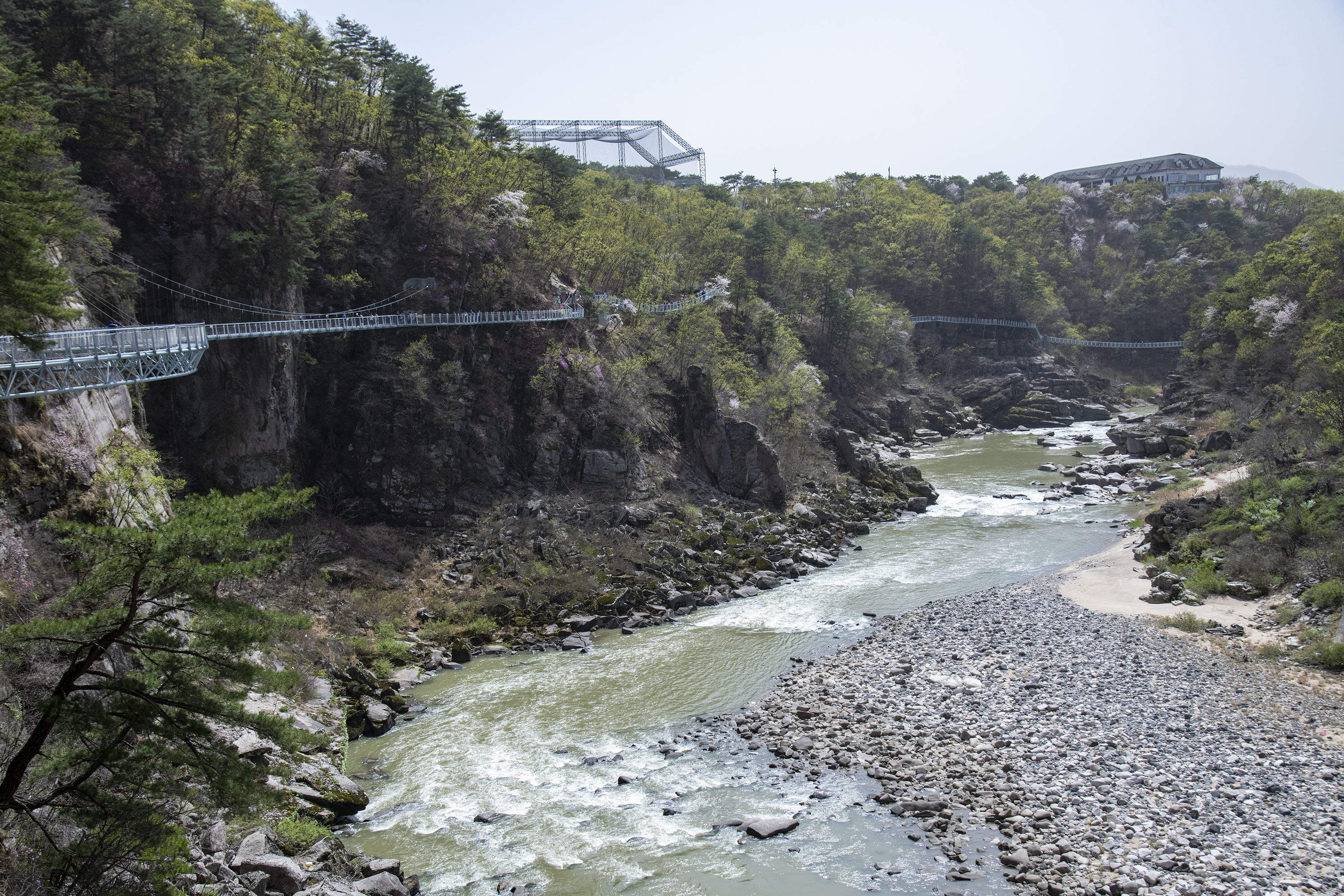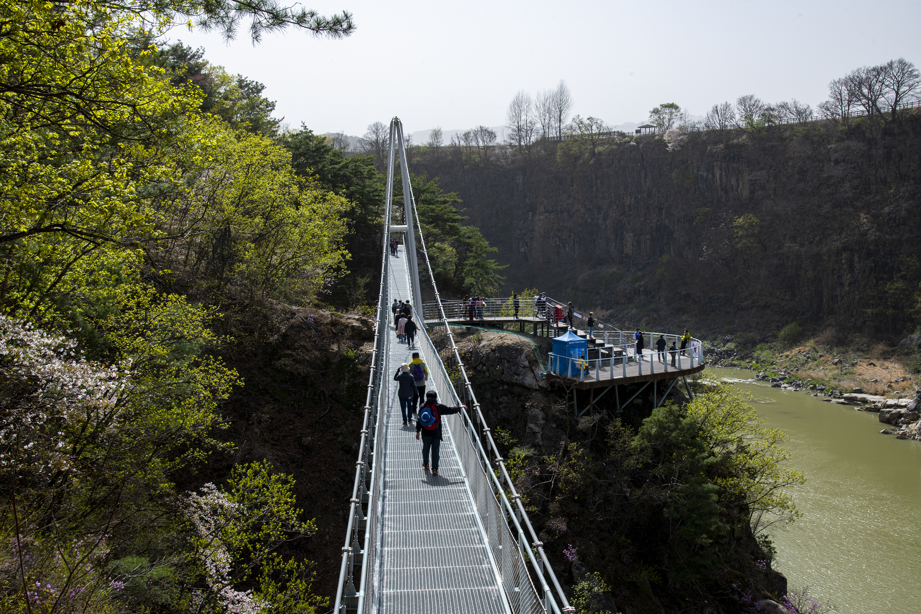 한탄강 유네스코 세계지질공원에 위치한 철원한탄강 주상리길은 총연장 3.6km , 폭1.5 m로 한탄강의 대표적인 주상절리 협곡과 다체로운 바위로 가득한 순담계곡에서 절벽을 따라 절벽과 허공 사이를 따라 걷는 잔도로 아찔한 스릴과 아름다운 풍경을 동시에 경험하는 느낌있는 길입니다.